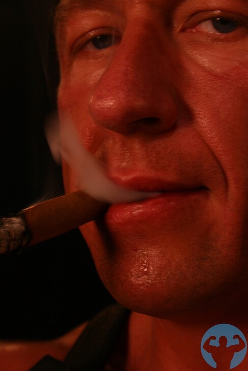 Big dicked leather Musclehunk Aaron Giant smoking
