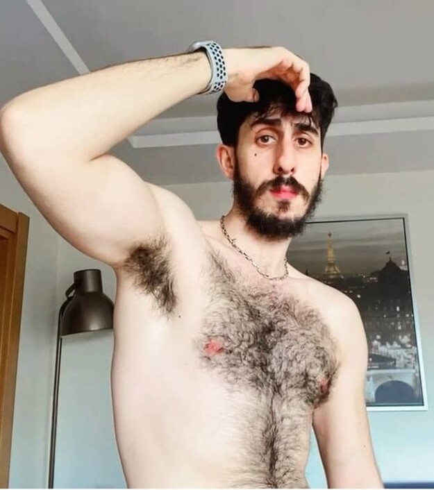 Bearded sexy dude with bushy hairy pits